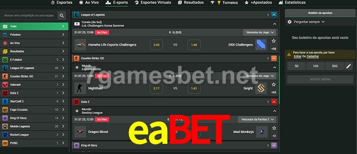 A aposta eabet oferece aos jogadores a experiência mais conveniente de apostas em eSports!